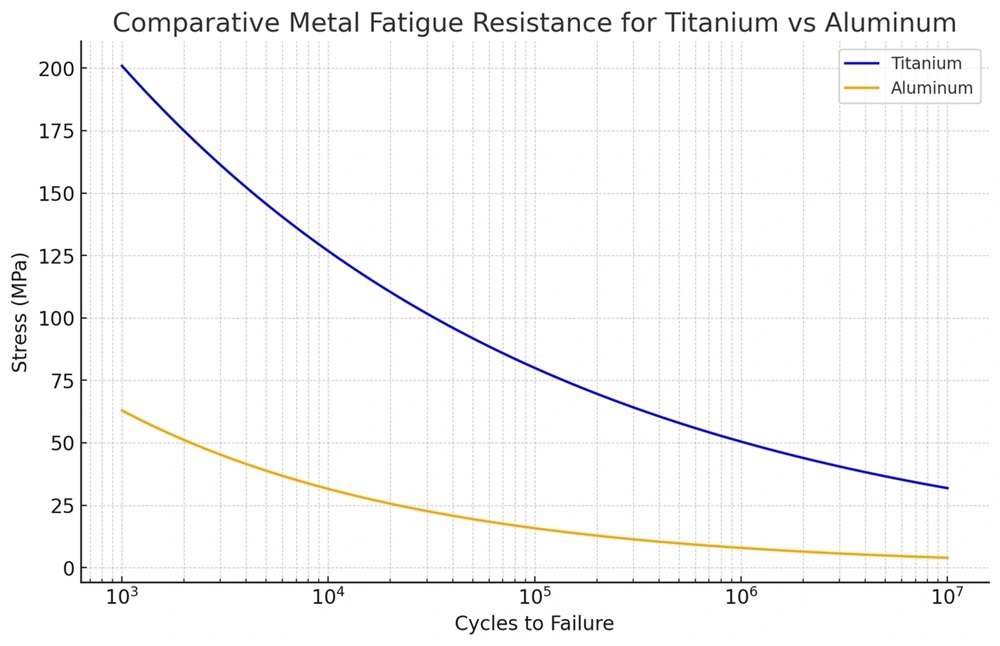 Titanium’s most impressive feature might be its extraordinary fatigue resistance. Ti-6Al-4V shows fatigue strength between 530-630 MPa, about five times greater than aluminum’s 95-105 MPa. This huge difference explains why aerospace components that face millions of load cycles often use titanium.