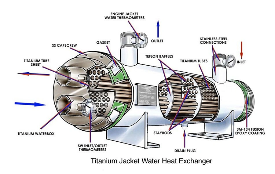 • Titanium’s protective oxide layer delivers exceptional corrosion resistance, enabling 20-40 year service life in harsh marine and chemical environments.